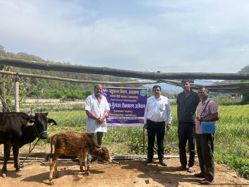राज्य स्तर पर पशु विभाग द्वारा (एफएमडी) ‘मुंह पका खुर पका, टीकाकरण अभियान चलाया जा रहा है। जिसके तहत यमकेश्वर ब्लॉक के अंतर्गत लगभग 300 पशुओं का टीकाकरण किया जा चुका है।