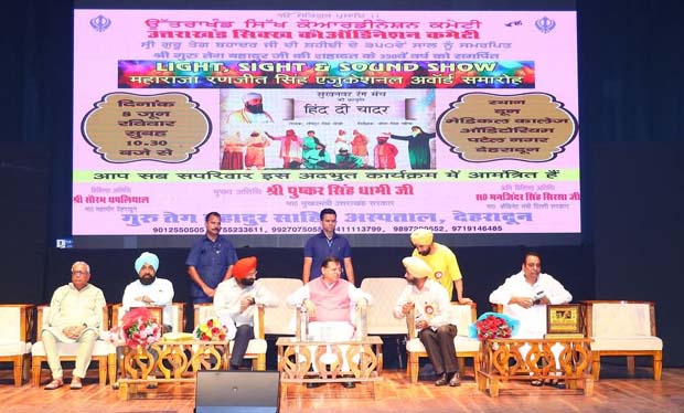 मुख्यमंत्री पुष्कर सिंह धामी ने गुरु तेग बहादुर के 350वें बलिदान वर्ष को समर्पित नाटक ‘हिन्द दी चादर’ के मंचन कार्यक्रम में प्रतिभाग किया। नाटक का मंचन उत्तराखंड सिक्ख कोऑर्डिनेशन कमेटी और श्री गुरु तेग बहादुर चैरिटेबल चिकित्सालय की ओर से किया गया।
