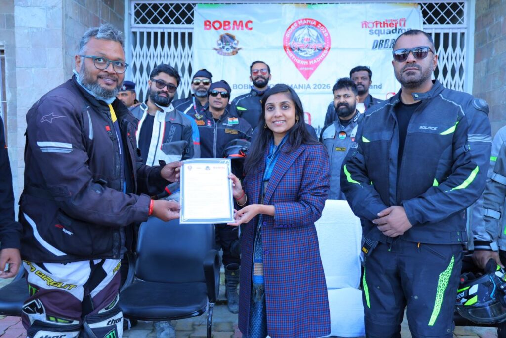 देश के प्रतिष्ठित मोटरसाइक्लिंग संगठन बीओबीएमसी के एफएसआरएमसी मोटरसाइकिल के 22 सदस्यीय दल ने उत्तराखंड के कुमाऊं और गढ़वाल क्षेत्रों में पर्यटन को बढ़ावा देने तथा देश के वीर सैनिकों को श्रद्धांजलि अर्पित करने के उद्देश्य से “ट्रिब्यूट टू ब्रेव हार्ट्स” थीम पर एक विशेष मोटरसाइकिल यात्रा प्रारंभ की है। यात्रा के दौरान दल शुक्रवार को पौड़ी पहुंचा, जहां जिलाधिकारी स्वाति एस. भदौरिया ने सभी राइडर्स का अतिथि देवो भव की भावना से गर्मजोशीपूर्वक स्वागत किया और उन्हें उत्तराखंड की ओर से शुभकामनाएं दीं।