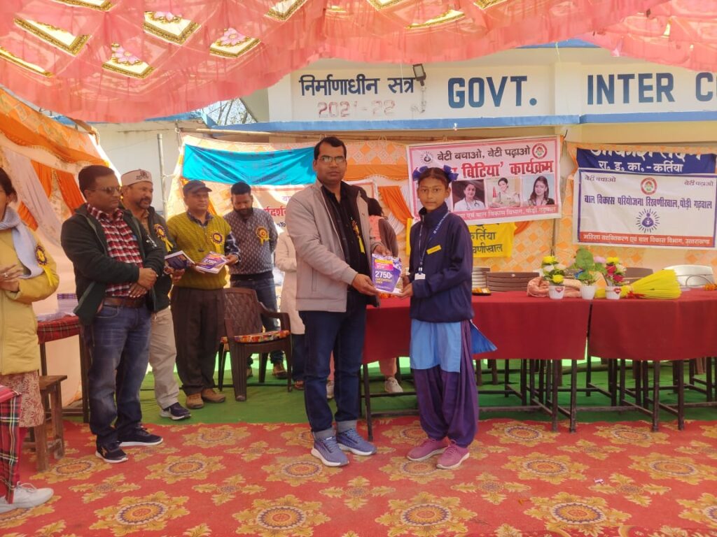 महिला सशक्तिकरण एवं बाल विकास विभाग, रिखणीखाल द्वारा ‘बेटी बचाओ, बेटी पढ़ाओ’ योजना के अंतर्गत राजकीय इंटर कॉलेज, कर्तिया में ‘अफ़सर बिटिया’ कार्यक्रम का सफल आयोजन किया गया। कार्यक्रम में शिक्षा, पुलिस और स्वास्थ्य विभाग के विशेषज्ञों ने 250 से अधिक बालिकाओं, अभिभावकों और आंगनबाड़ी कार्यकर्ताओं को उनके अधिकारों और उज्ज्वल भविष्य के प्रति जागरुक किया।