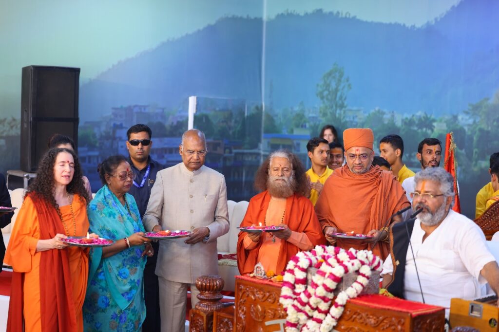 भारत के 14वें माननीय राष्ट्रपति रामनाथ कोविंद की परमार्थ निकेतन, ऋषिकेश में तीन दिवसीय आध्यात्मिक यात्रा के दौरान आज स्वामी चिदानन्द सरस्वती के पावन सान्निध्य में परमार्थ निकेतन में आयोजित 34 दिवसीय श्रीराम कथा में गरिमामयी उपस्थिति रही। यह क्षण आत्मिक चेतना, मूल्यों और मर्यादा की ऊंचाईयों को छूने वाला एक अद्भुत अवसर था।