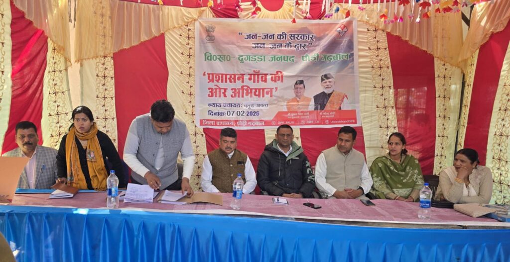 मुख्यमंत्री पुष्कर सिंह धामी के निर्देशन पर जन-जन की सरकार, जन-जन के द्वार अभियान के तहत विकासखंड दुगड्डा की न्याय पंचायत पठुड़अकरा में बहुउद्देश्यीय शिविर का आयोजन किया गया। शिविर में बड़ी संख्या में ग्रामीण पहुंचे और अपनी समस्याएं विभागीय अधिकारियों के समक्ष रखीं।