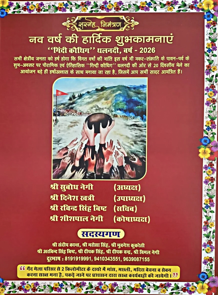 यमकेश्वर ब्लॉक के थलनदी में मकर संक्रांति को आयोजित होने वाले राज्य मेला गिन्दी कौथिग की तैयारी गेंद मेला समिति थलनदी के द्वारा पूरी कर ली गई है और 14 से 15 जनवरी को होता है मेले का आयोजन।