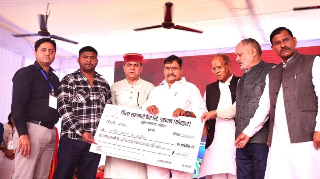 कार्यक्रम में मुख्य अतिथियों द्वारा पौड़ी और काल्जीखाल विकासखंड के 124 कृषकों को एक करोड़ 54 लाख रुपये का शून्य प्रतिशत ब्याज पर ऋण वितरित किया गया।