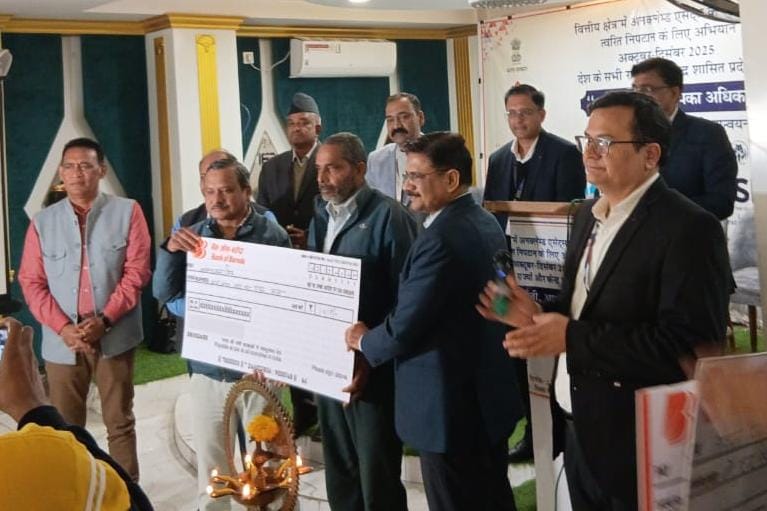भारत सरकार के वित्त मंत्रालय द्वारा संचालित आपकी पूंजी, आपका अधिकार अभियान के अंतर्गत मंगलवार को मिक्स वेडिंग प्वाइंट, देवी रोड कोटद्वार में विशेष शिविर आयोजित किया गया। शिविर में विभिन्न बैंकों के लंबित वित्तीय दावों का निस्तारण करते हुए पात्र लाभार्थियों को चेक वितरित किए गए। जिले में अब तक विभिन्न बैंकों द्वारा कुल 362 लंबित दावों पर 4.22 करोड़ रुपये की राशि उनके वास्तविक हकदारों तक पहुंचाई जा चुकी है।