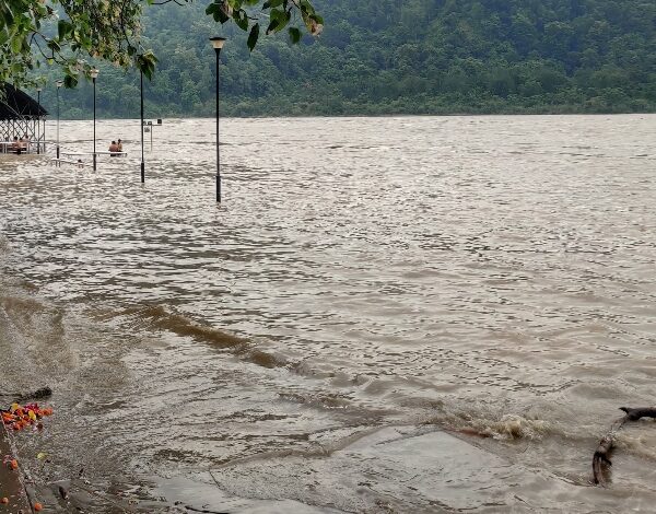 त्रिवेणी घाट ऋषिकेश में गंगा का जलस्तर चेतावनी रेखा से ऊपर बह रहा है। पहाड़ी व मैदानी क्षेत्रों में हो रहे लगातार हो रही मूसलाधार बारिश से गंगा व उसके सहयोगी नदियों का जल स्तर काफी बढ़ गया है। जिसके कारण त्रिवेणी घाट पर गंगा चेतावनी रेखा से ऊपर बह रही है। कोतवाली प्रभारी ऋषिकेश प्रदीप राणा ने बताया कि कई दिनों से हो रही मूसलाधार बारिश के कारण गंगा का जलस्तर काफी बढ़ गया है। कहा कि त्रिवेणी घाट पर आज गंगा चेतावनी रेखा से ऊपर बह रही है। उन्होंने लोगों से गंगा किनारे न जाने की अपील की है। कहा कि त्रिवेणी घाट के साथ ही अन्य गंगा घाटों पर तैनात जल पुलिस के जवानों द्वारा लाउडस्पीकर के माध्यम से लोगों को गंगा किनारे न जाने के लिए भी जागरूक किया जा रहा है।